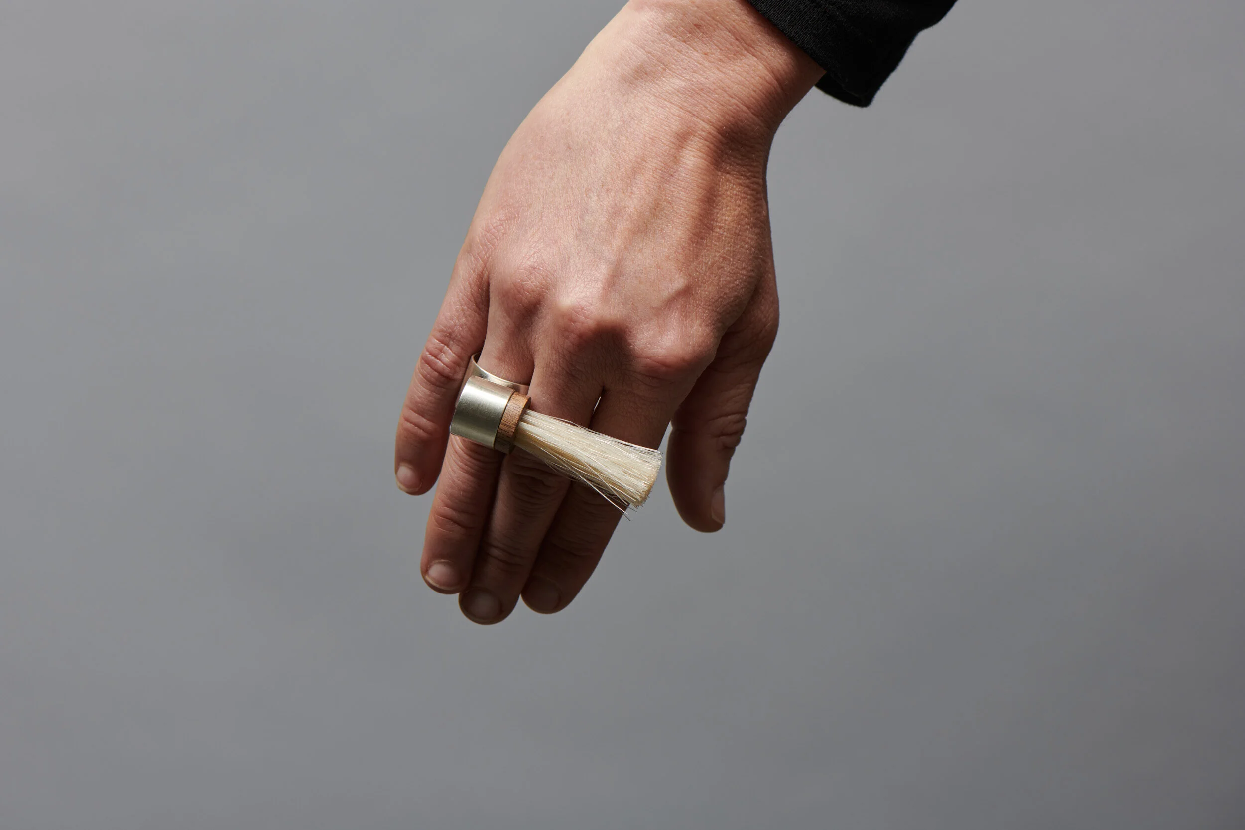 The Scrubber Ring Series was born from a fascination with the domestic scrubbing brush and a curious expression in my German mother tongue –‘Kratzbürste’ literally meaning scrubbing brush. This seemingly utilitarian object has another quite sinister meaning as a demeaning expression to describe articulate, politically engaged women. The Scrubber Rings Series intends to reverse this demeaning terminology inflicted upon women by firstly acknowledging the brushes aesthetic beauty and in doing so consciously elevating and celebrating the work undertaken by women in the home and beyond as important contributions to ensure the survival of families as well as society as a whole. Creating this series of small, beautiful resistance pieces acknowledges and celebrates the vast and varied work that women undertake world wide on a daily basis.